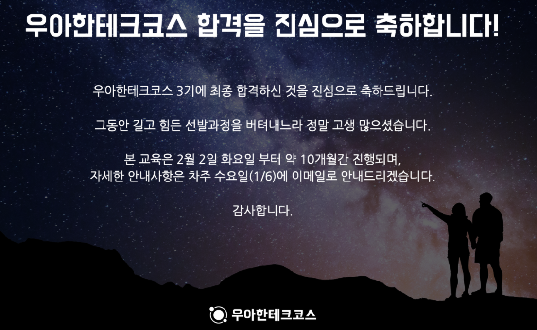 그랬더니 보란듯이 SSAFY는 면접의 기회도 주어지지 않았고 반대로 우아한 테크코스는 1차 합격을 하게 되었다.