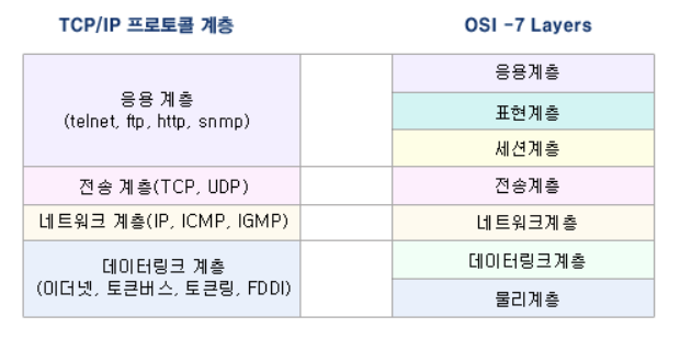 출처 : https://yangbox.tistory.com/10 위와 같이 OSI (Open System Interconnection) 7계층을 웹 서비스에 맞게 간소화시킨 모델이 TCP/IP 4계층 입니다. 그 중 전송계층은 IP에 의해 전달되는 패킷의 오류 검사 및 데이터가 잘못 되었을 경우 재전송을 요구하는 등의 제어를 담당하는 계층입니다. 여기서 사용이 되는 프로토콜이 TCP와 UDP 입니다.